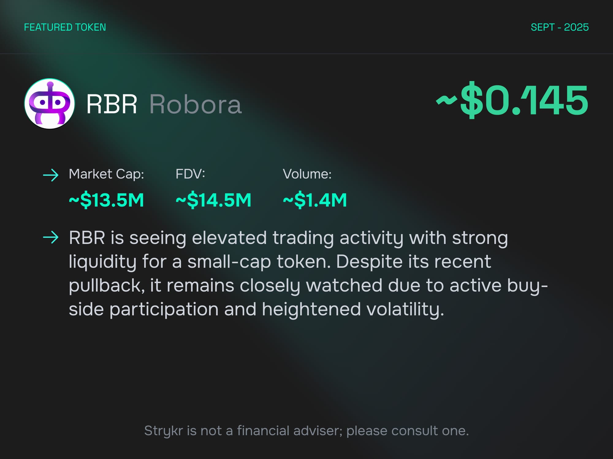 Robora is emerging as one of the more notable small caps in the market, trading near $0.145 with a market cap of $13.5M and volume picking up steadily. Elevated liquidity signals growing buy side participation, keeping RBR active on trader watchlists.