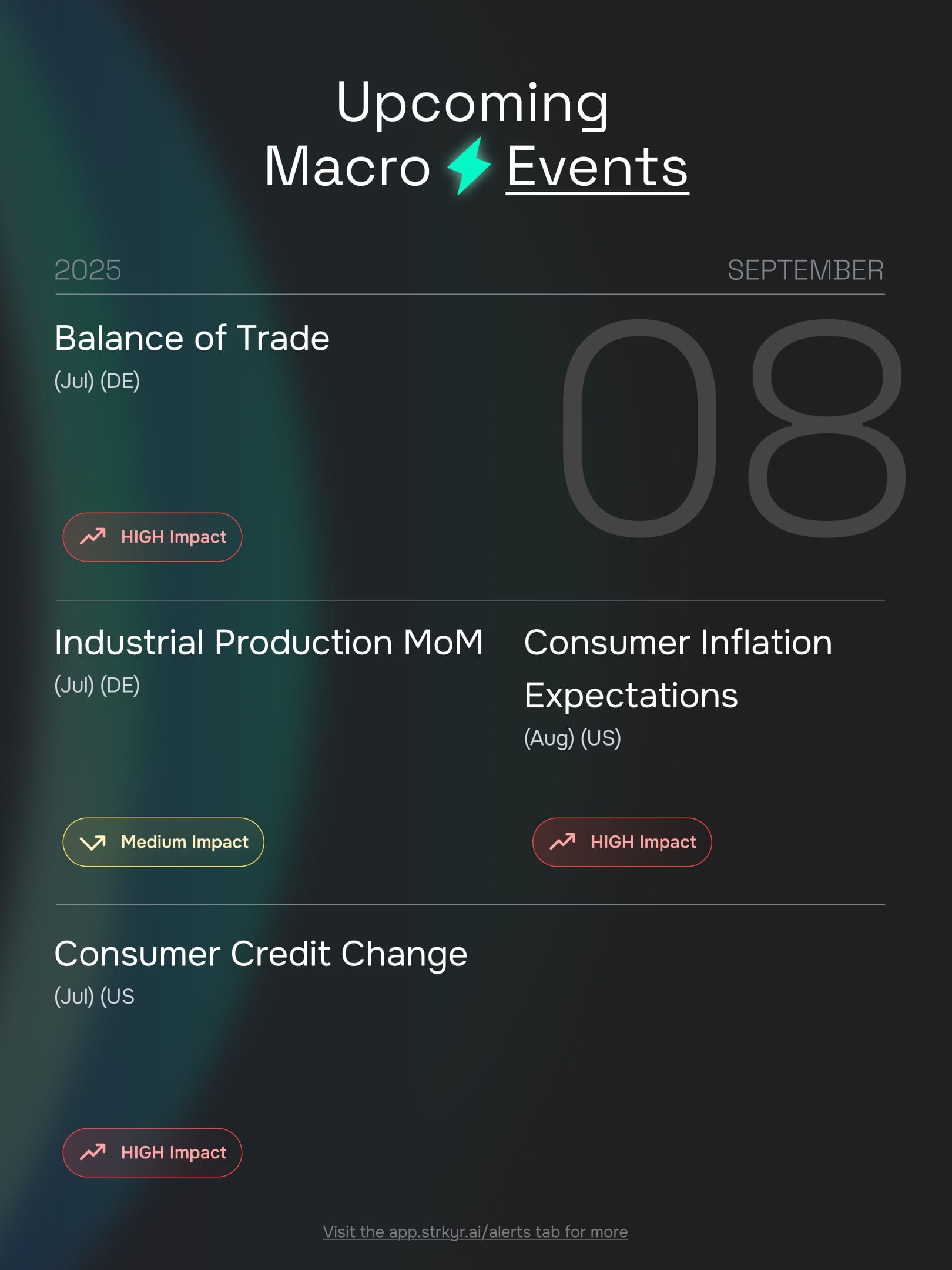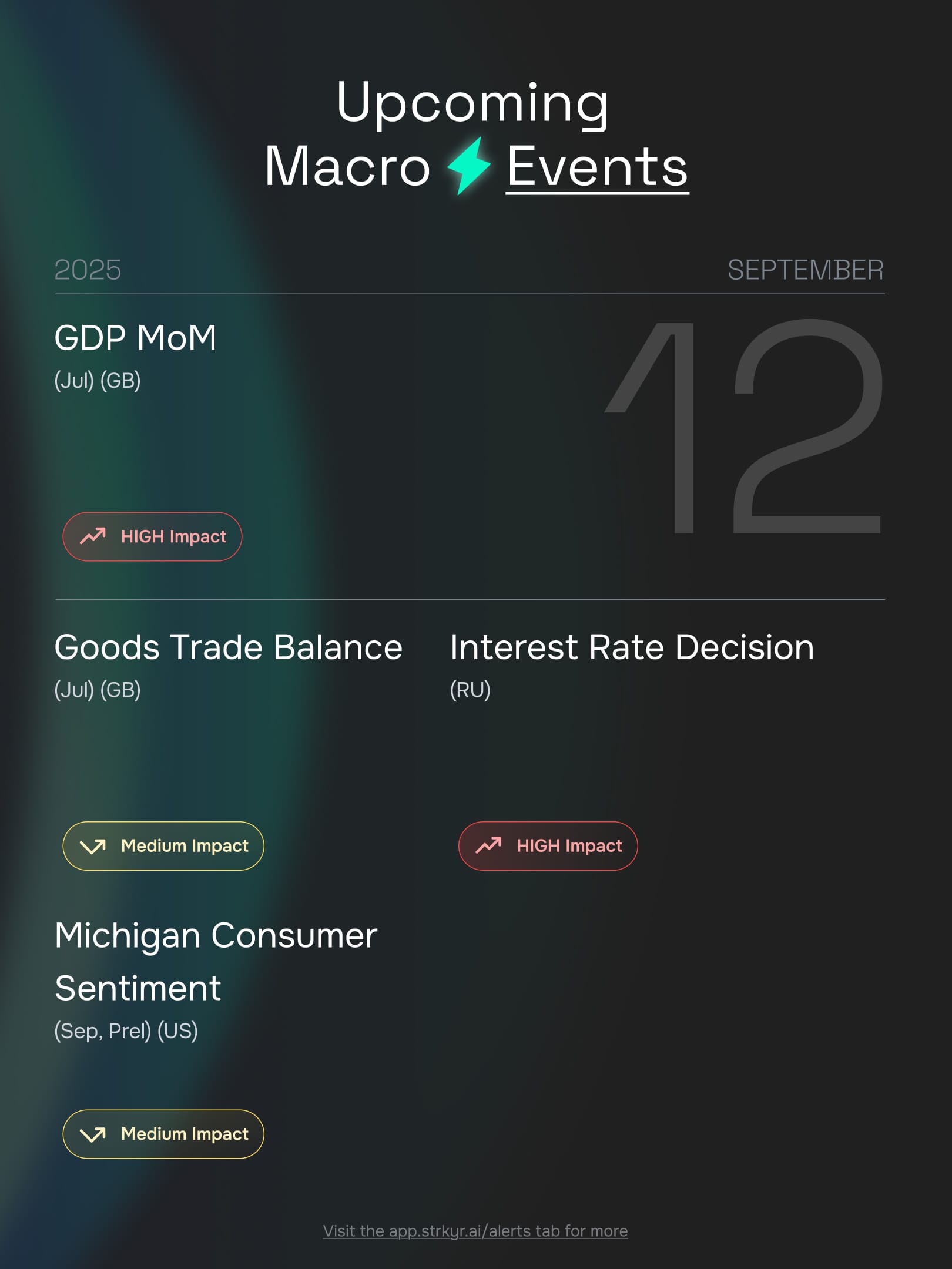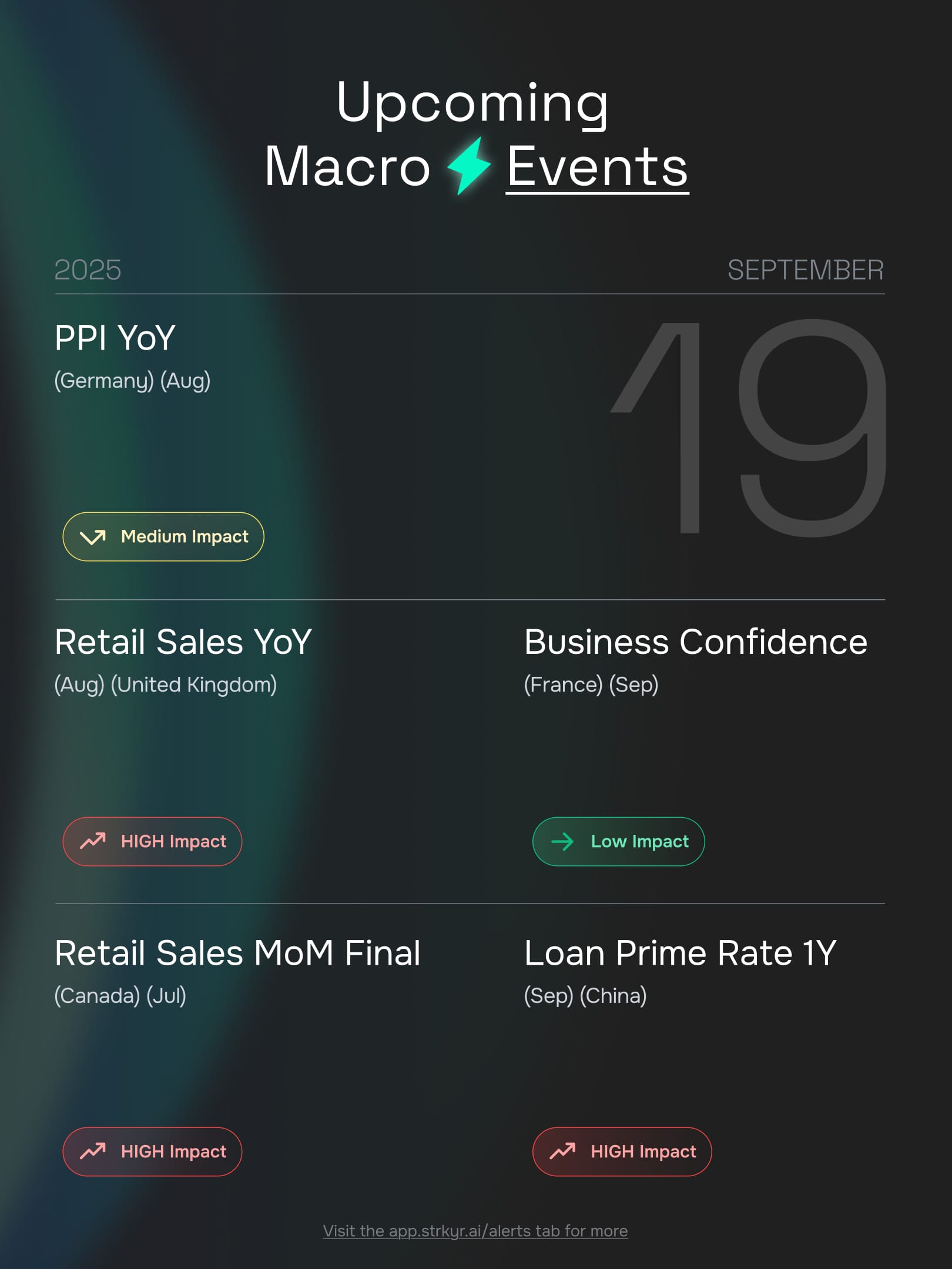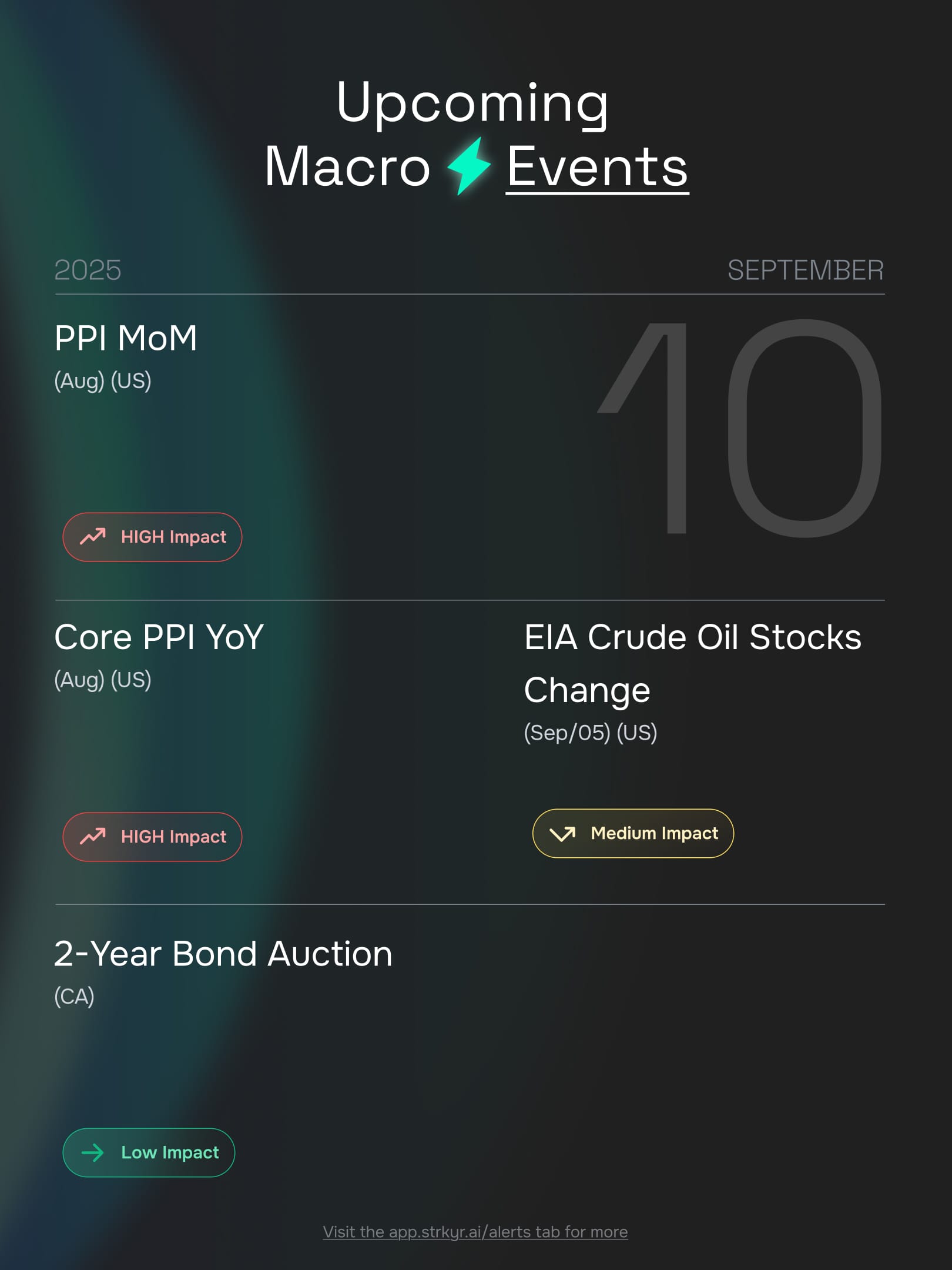 That wraps up Edition No. 2. Next week we’ll track fresh inflation data, central bank narratives, and how majors and alts position into the second half of September. Stay tuned, and thank you for reading Strykr.ai Weekly.