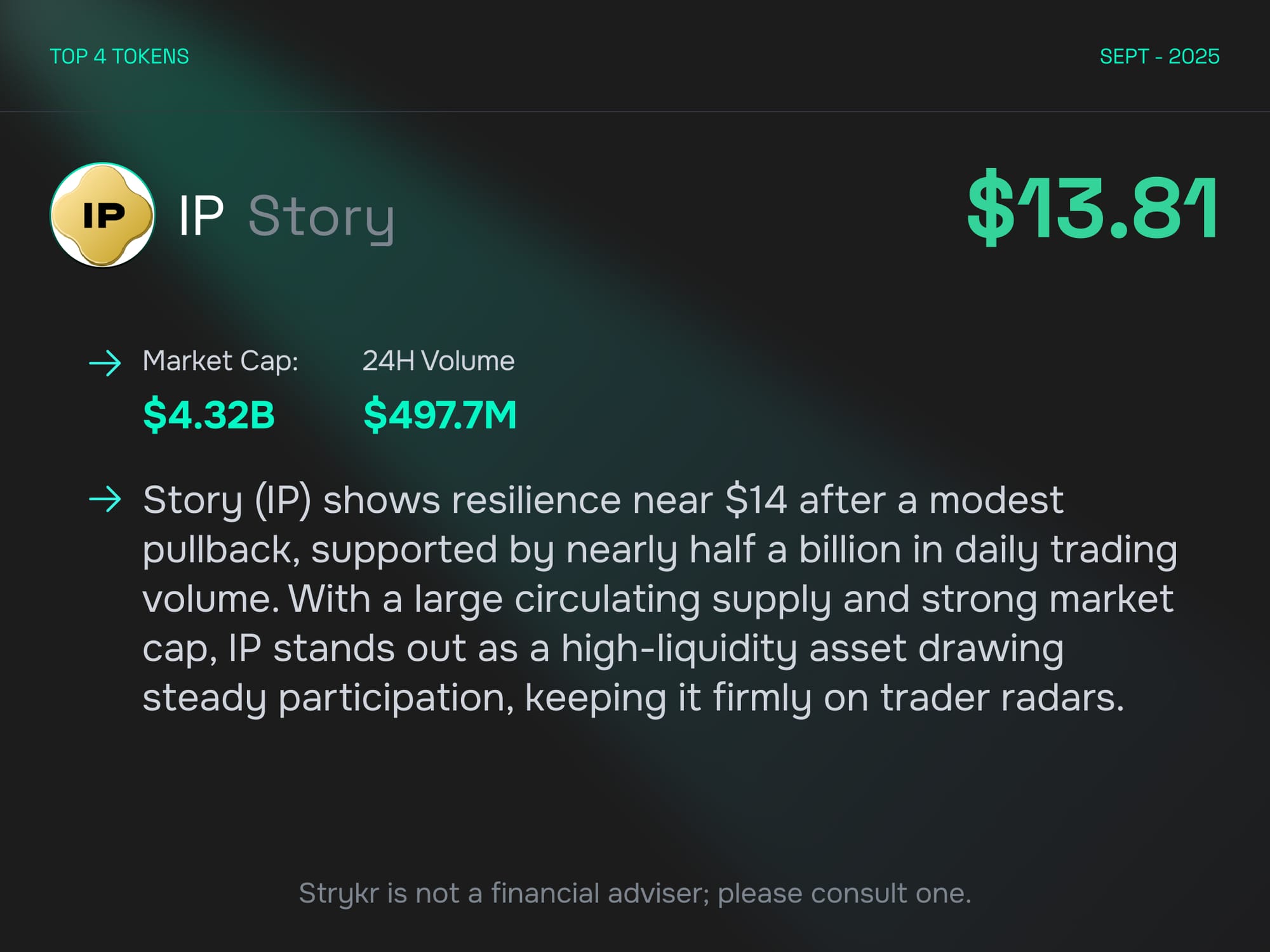 The takeaway: Story (IP) has graduated into the category of tokens that matter beyond one-week momentum. For traders, its blend of size, liquidity, and consistent signal activity makes it a name to track closely as September unfolds.