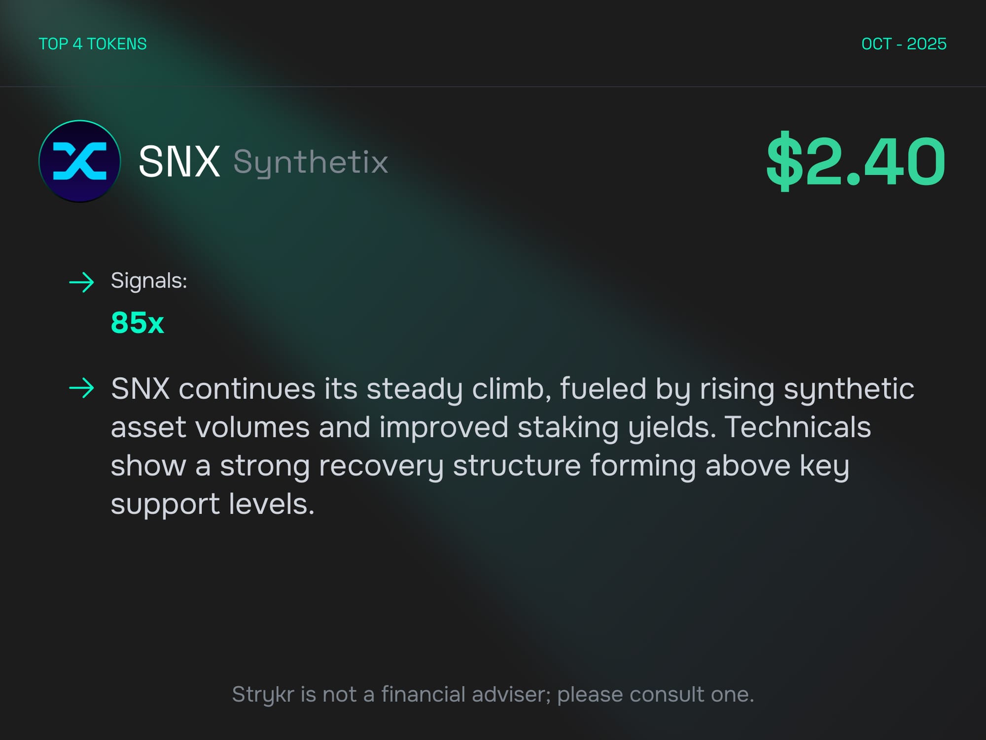 The takeaway: SNX has matured beyond a cyclical DeFi token into a core pillar of the on-chain derivatives landscape. Its liquidity depth, staking growth, and consistent trading participation make it a leading indicator of confidence across the broader DeFi sector.